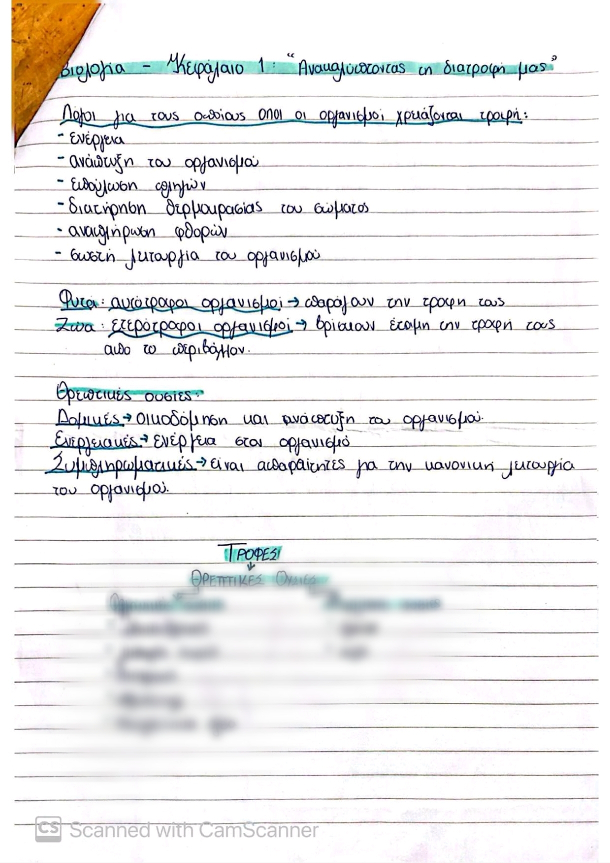 Βιολογία Β’ Γυμνασίου 3 Κεφάλαια (8 σελίδες)