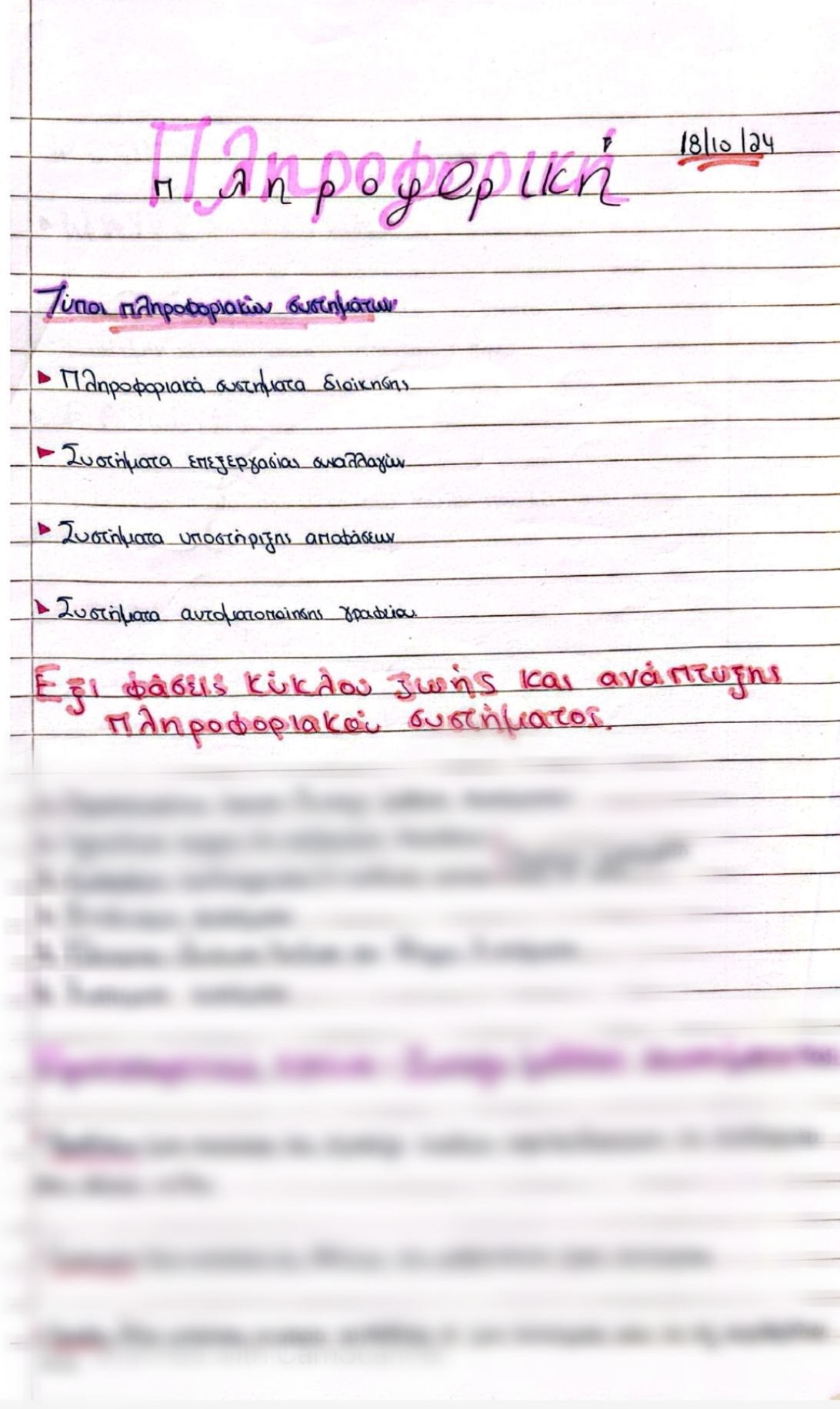 Πληροφορική Β’ Λυκείου – Πληροφορικά Συστήματα και Προκαταρκτική Έρευνα (2 σελίδες)